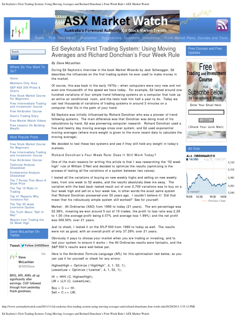 Signals issue right after the close. His first trading system was developed based on exponential moving averages. Ed seykota’s first trading job.